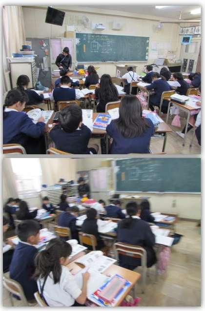 4年生の算数の学習です。1辺が1mの正方形の面積が1平方メートルであることをつかみ、1平方メートルと1平方センチメートルの関係について考えました。また、新聞紙で1平方メートルを作って、その上に乗り、広さを体感しました。