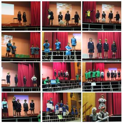 4年生のリハーサルの様子です。4年生の発表は、『安全・安心な生活を支える人々』です。社会科の劇となっています。