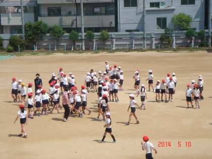 3年生は、運動場で2クラス合同で体育を行いました。運動場をいっぱいに使って、初夏のような陽気の中、元気いっぱい体を動かすことができました。