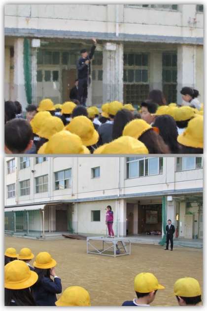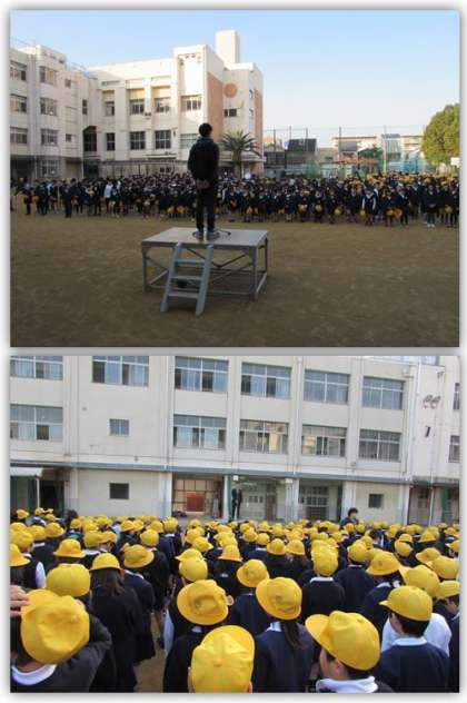 初めに学校長の話です。『あいさつについて、話をします。先週、あいさつ週間でした。あいさつの仕方を見てみると、3つに分けられると思います。代表委員があいさつをしても、あいさつをしない。代表委員があいさつをしてから、あいさつをする。代表委員より先にあいさつをする。皆さんは何番ですか。1番の人は2番、2番の人は3番になるようにしましょう。』『今週はなわとび週間です。20分休みは縄を持って、運動場で体を動かしましょう』『先週の土曜日、発表会でした。皆、とても頑張っていて、よかったと思います。この発表会でがんばってきたこと、頑張ってできたことを、これからの学習や生活に何か生かせないか考え、自分の成長につなげていきましょう。』