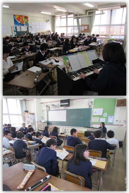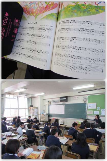 5年生の音楽の学習です。『ありがとうの花』を歌っています。