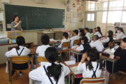 5年生、6年生は、毎週1時間、外国語の学習をします。そのうち、年間で15時間程度、native speakerの先生に来ていただいています。今年度も、千本小学校ではジェーン先生に来ていただき、楽しく学習を進めています。