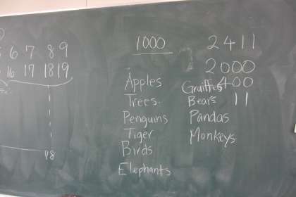 本日(5月13日)、6年生は教材「Hi,Friends!」を使って、数の数え方の学習をしました。1から1000までの数え方を知って、教材にある動物などの数を数えました。また、その後で、名刺交換ゲームも行いました。