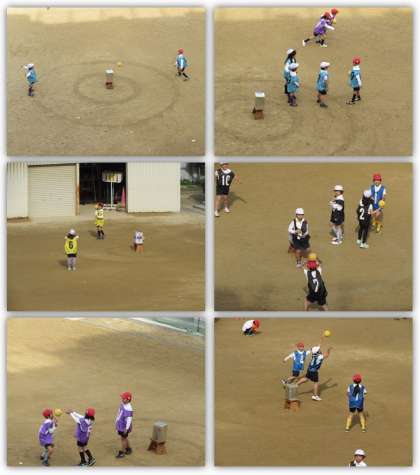 12月1日(金) 3年生の体育の学習です。的当てゲームのチーム練習に取り組んでいます。