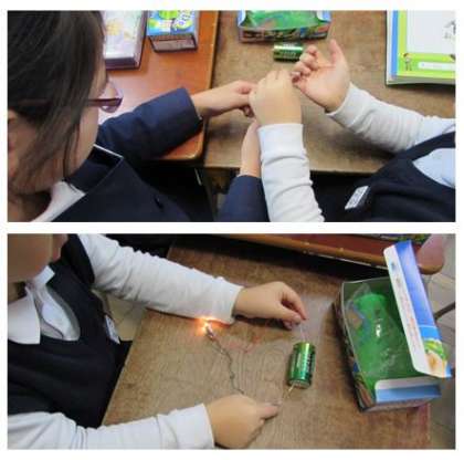 3年生の理科の学習です。豆電球、乾電池、導線をつないで、豆電球に明かりをつけることができるのか、確かめました。