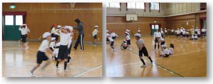 2年生の体育の学習です。外の風はとても冷たいのですが、体育館で『ガッチャンおに』をして、体がぽかぽかと温まってきました。