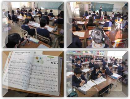 4年生の音楽の学習です。『茶色の小びん』のリコーダー演奏に取り組んでいます。