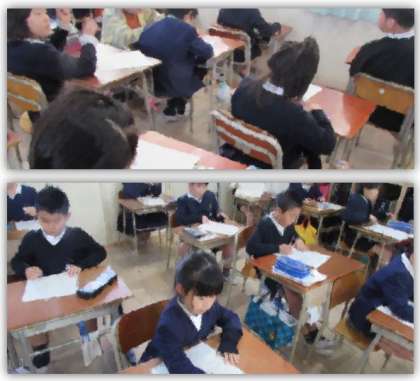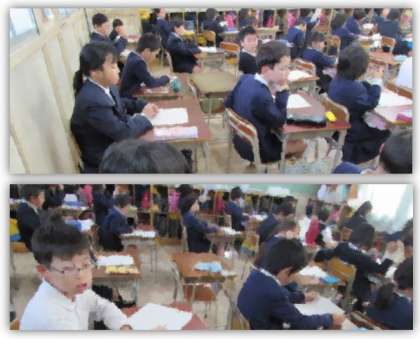 3年生の社会科の学習です。消しゴム工場の仕事についてのテストに取り組んでいます。