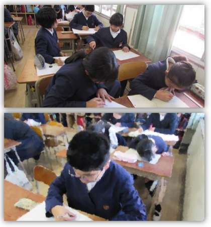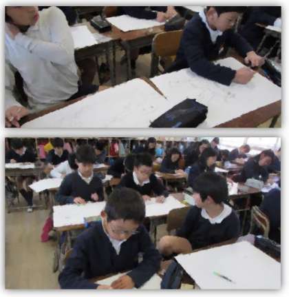5年生の図画工作の学習です。お話の絵を描いています。題材は『竜退治の騎士になる方法』です。子どもたちは、それぞれ独創的な竜を描いています。
