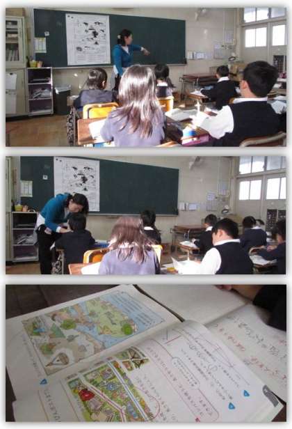 3年生の算数の学習です。コンパスには、等しい長さを測り取る機能があることを利用して、教科書41ページの絵で、指定された大きさの円をかいて宝の場所を探しました。