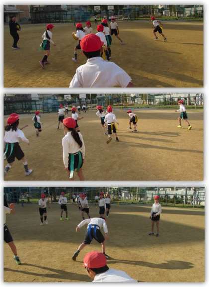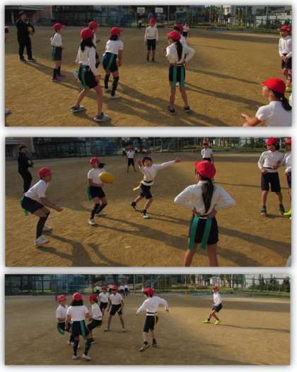 4年生の体育の学習です。フラッグフットボールに取り組んでいます。