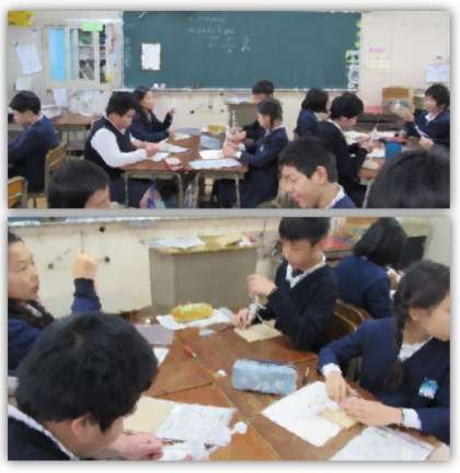 6年生の図画工作の学習です。芯材と紙粘土を使って、将来の自分の姿を想像し、作ります。