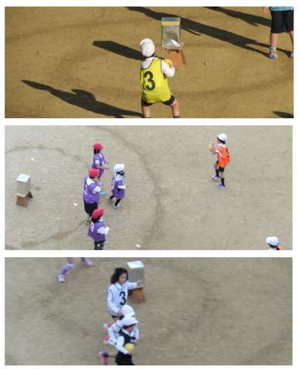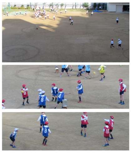 1時間目、3年生は体育の学習です。子どもたちが運動場に出てみると、日なたは運動場の北側の、ほんの一部だけでした。けれども、準備運動をして、ゲームが始まると、体がポカポカと温まってきました。