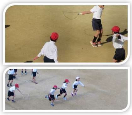 1年生は、準備体操の後、縄跳びを行いました。
