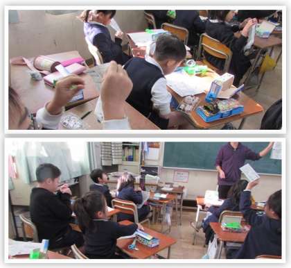 3年生の理科の学習です。回路の途中にいろいろな物をつなぎ、電気を通す物と通さない物を調べていきます。