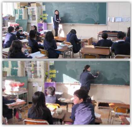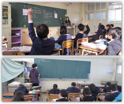 3年生の算数の学習です。「分数」「分母」「分子」の用語の意味を知り、液量についても、端数部分の大きさを分数で表せることを学習しました。