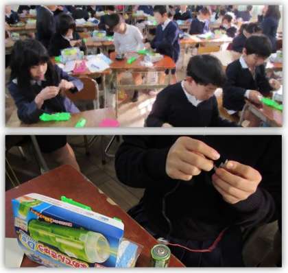 3年生の理科の学習です。電気を通す物と通さない物を比較しながら調べ、電気を通す物の共通点について考えました。