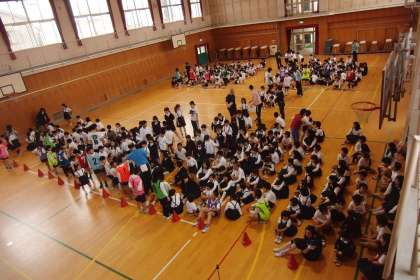 千本小学校では、毎週木曜日の朝8時30分から、児童集会を行います。児童集会では、1年生と6年生、2年生と4年生、3年生と5年生がペアとなり、活動します。主に、各委員会が活動内容を考えます。