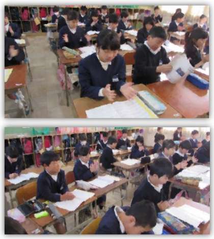 4年生の音楽の学習です。『クラッピング ファンタジー 第7番』に合わせて手拍子を打ち、リズムを確かめています。