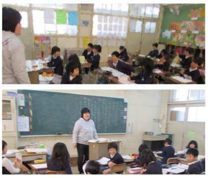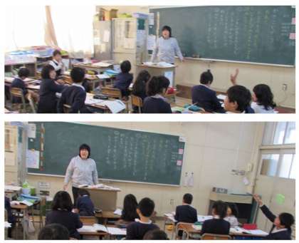 2年生の国語の学習です。かさを売りに行くじいさま、ばあさまの様子を考え、読んでいきました。