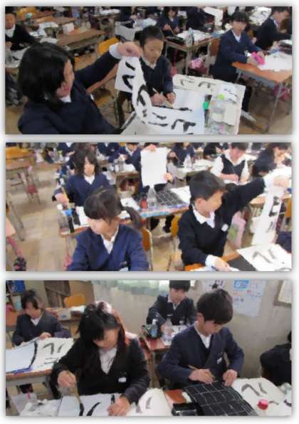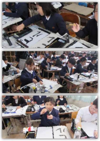 3年生の国語の学習です。毛筆で『ビル』と書きました。