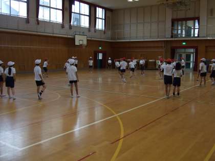 本日は、室内スポーツクラブと科学クラブの様子を紹介します。室内スポーツクラブは、体育館でドッジボールや卓球などを行います。今日は、ドッジボールをしています。