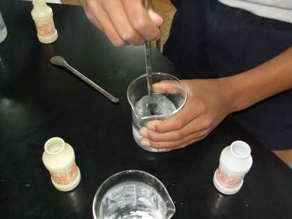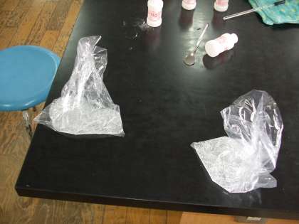 科学クラブは、理科室での活動です。今日は、洗濯のりとほう砂(しゃ)を使って、スライムを作りました。