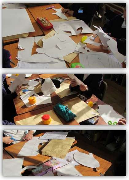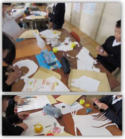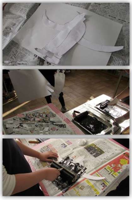 2年生の図画工作の学習です。紙版画で、海遊館の生き物を表現します。今日はインクをつけて、刷りました。