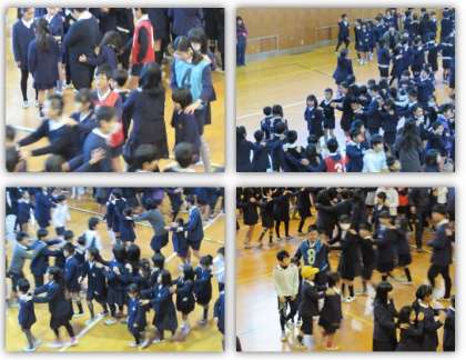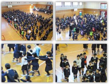 本日の集会は、集会委員会によるじゃんけん列車を行いました。じゃんけんを繰り返すと、長い長い列になりました。