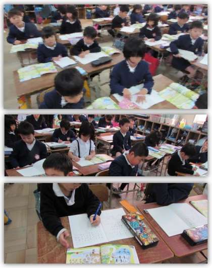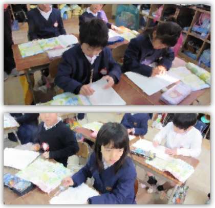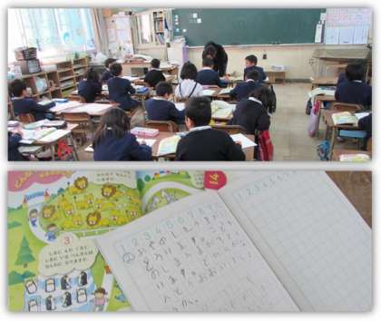 1年生の算数の学習です。問題文を読み、たし算になるのか、ひき算になるのか、それぞれどんな式を立てればよいかを考え、解いていきました。