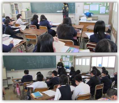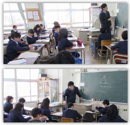 5年生の算数の学習です。返されたテスト(図形の角)の確かめをしています。