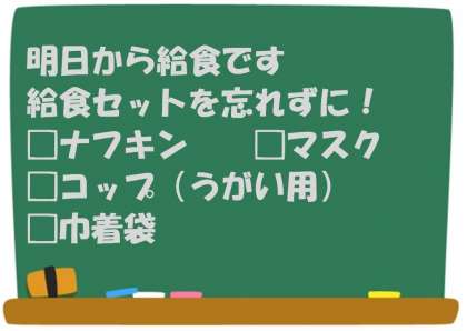 明日1月10日(水)より、給食が始まります。給食セットを持たせてください。