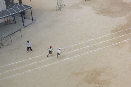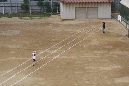 体力テストの一環として、50メートル走に取り組んでいます。1年生も4年生も、全力で駆け抜けています。この記録を、来年度、どれだけ伸ばせるか、楽しみです。