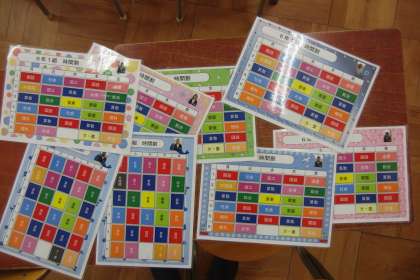 6年生は、今日の総合的な学習の時間に、パソコン室に行き、時間割を作りました。ほかの学年でも、パソコンを使って時間割を作っているところがありますが、6年生は、印刷されたものが誰のものかわかるように、それぞれ自分の写真を入れて作りました。出来上がった時間割を、子どもたちは嬉しそうに眺めていました。