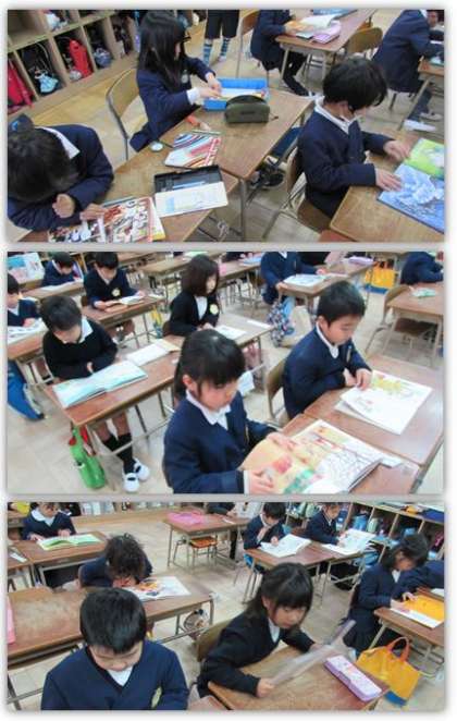 水曜日の朝、読書タイムの様子をご紹介します。