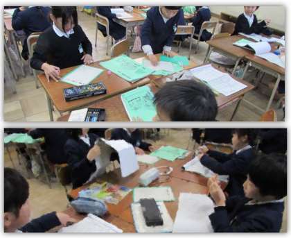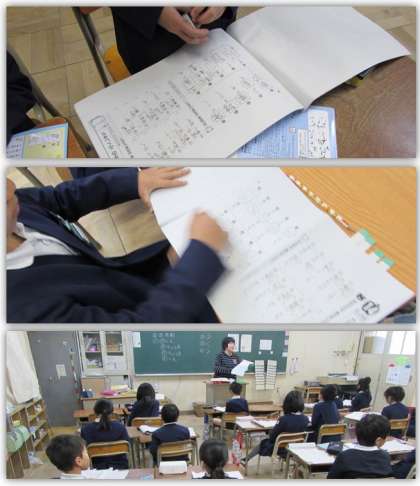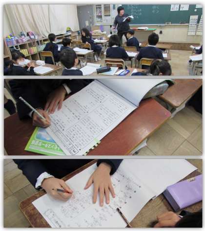 2年生が、冬休みの宿題の答え合わせをしています。間違えていたところは、やり直しをしました。