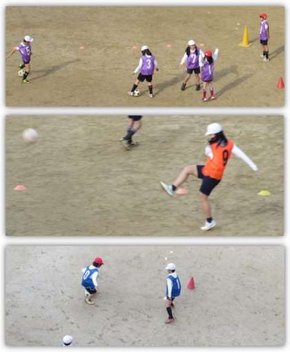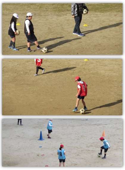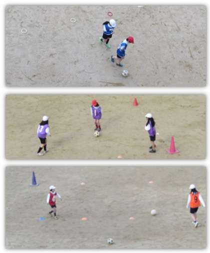 4年生の体育の学習です。運動場で、ミニサッカーに取り組みました。