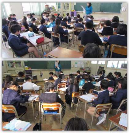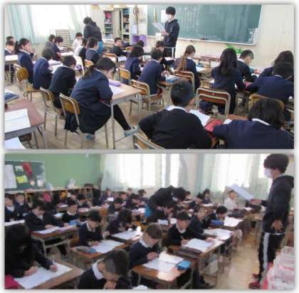 画像は、3年生が質問紙調査に取り組んでいる様子です。
