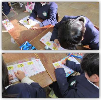 1年生の国語の学習です。『むかしばなしをたのしもう』の新出漢字を学習しています。