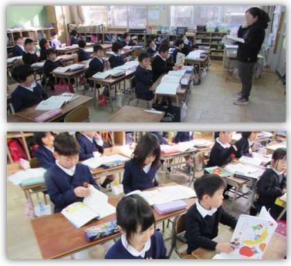 1年生の国語の学習です。これまでに読んだ本の中から、友達に紹介したいと思う本を選びました。