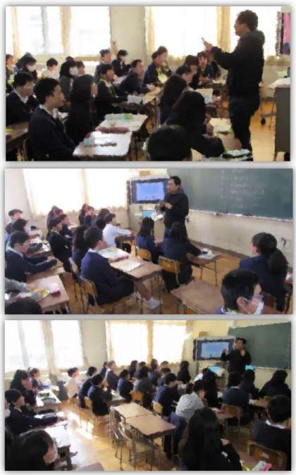 6年生の外国語学習の様子です。Alvi先生と、『What time do you〜?』の言い方を学習しました。