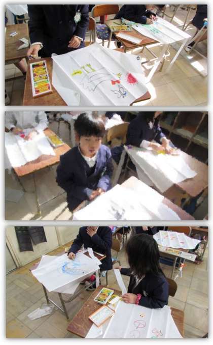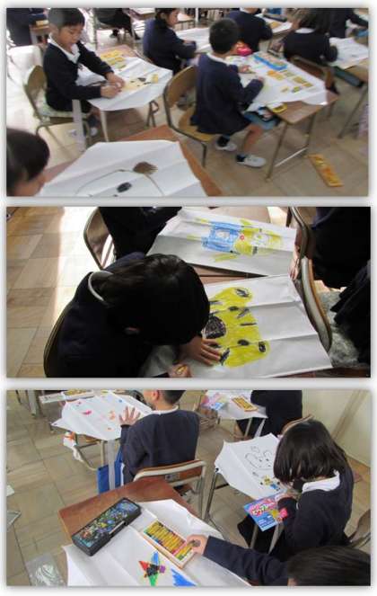 1年生の生活科の学習です。たこに絵を描き、色を塗りました。