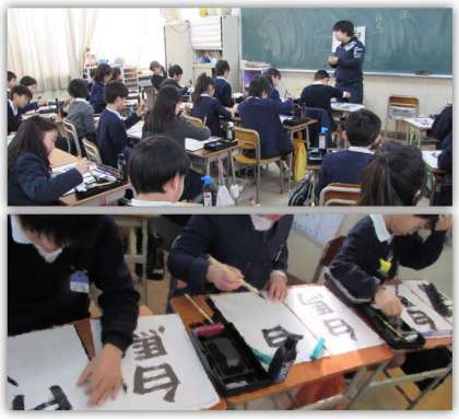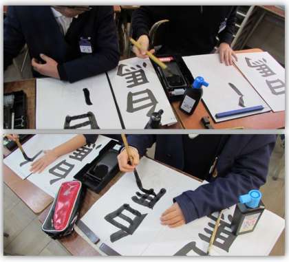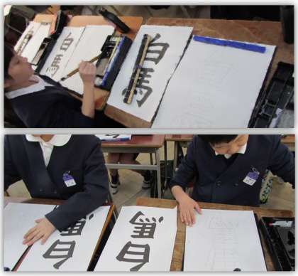 4年生の国語の学習です。毛筆で、『白馬』と書きました。