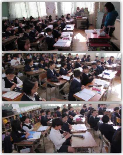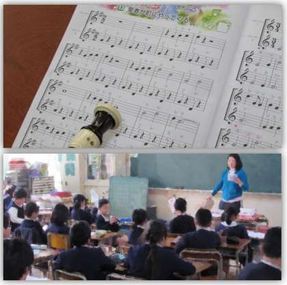 3年生の音楽の学習です。リコーダーで『聖者が町にやってくる』の演奏に取り組んでいます。画像は、班ごとに練習をしている場面です。