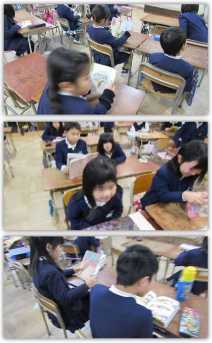 画像は、読書タイムの2年生です。物語を読んでいる子も多くいます。