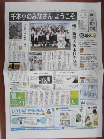 本日、5年生は社会見学で、朝日新聞大阪本社に行きました。新聞ができるまでのことについて、説明をしていただきました。子どもたちは現在、社会科で学習していることがらと関連付けて考えることができました。