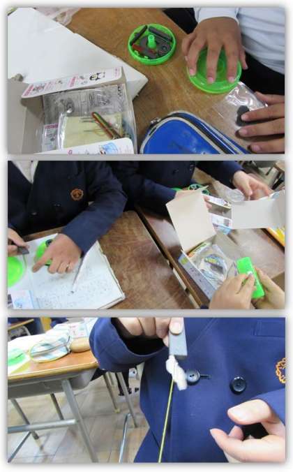 3年生の理科の学習です。磁石と鉄との間があいている状態でも、磁石が鉄を引き付けるかどうかを調べました。そして、実験の結果から、磁石は電気と違い、磁石が鉄を引き付ける力は磁石に直接触れずに離れていてもはたらくことに気づきました。