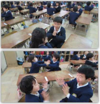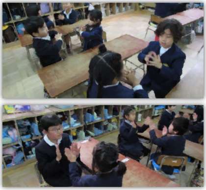 1年生のEnglish Timeの様子です。『ABCのうた』に合わせて、手を打ち合わせています。