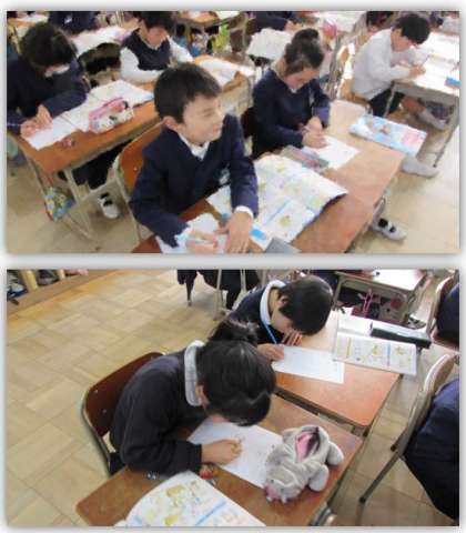 2年生の体育の学習です。跳び箱運動で学習したことを振り返り、カードに記録しました。