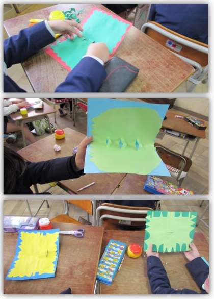 飛び出す仕組みを使って(2年生) 公開日 2018/01/23 更新日 2018/01/23 2年生 1月23日(火) 2年生の図画工作の学習です。飛び出す仕組みを使って、手紙を書きました。 いいね(0)
